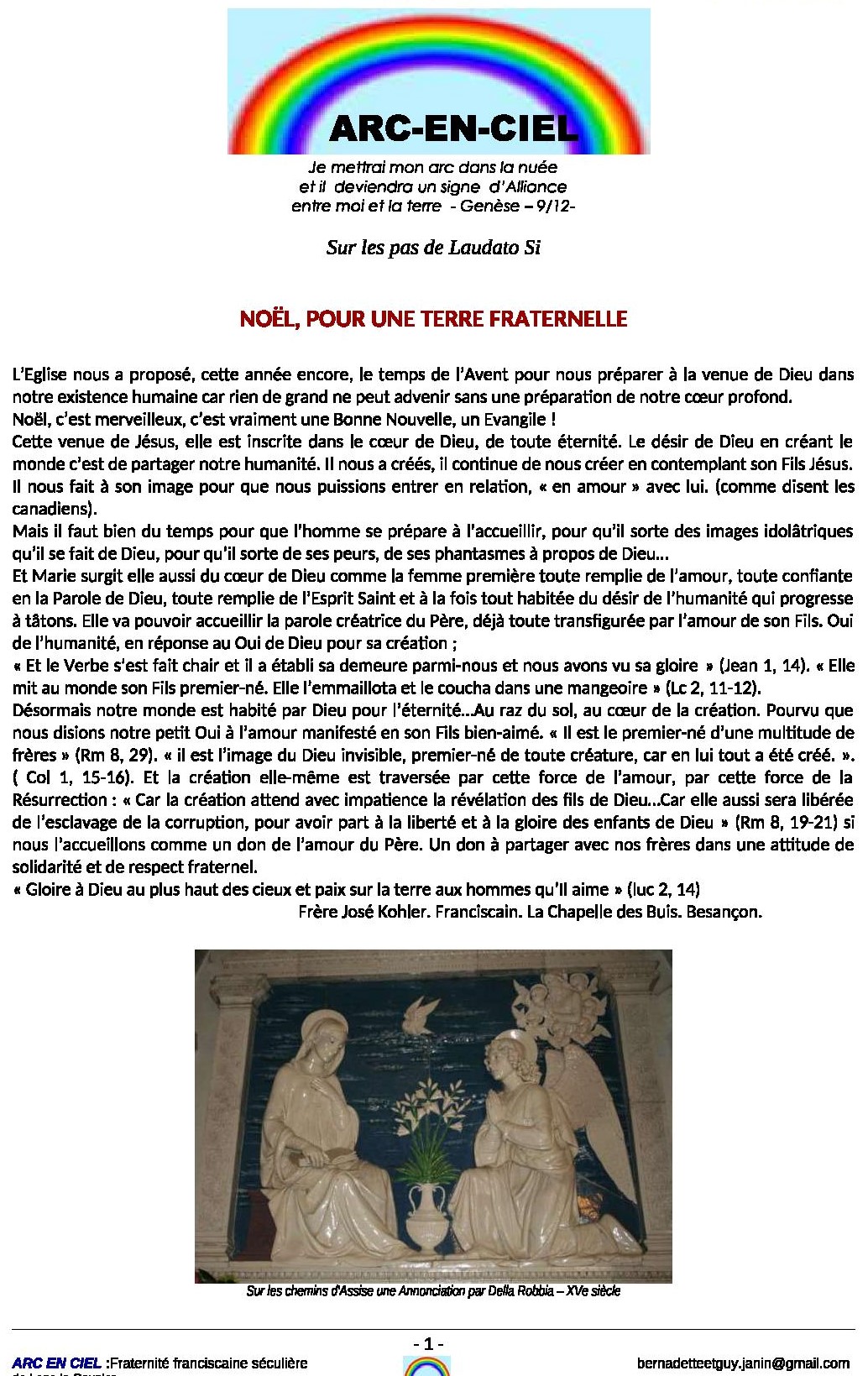 Vous trouverez ci joint l'intégralité du n°23, de Noël d'Arc en Ciel , notre bulletin trimestriel franciscain. Vos remarques, conseils, etc seront bienvenus.