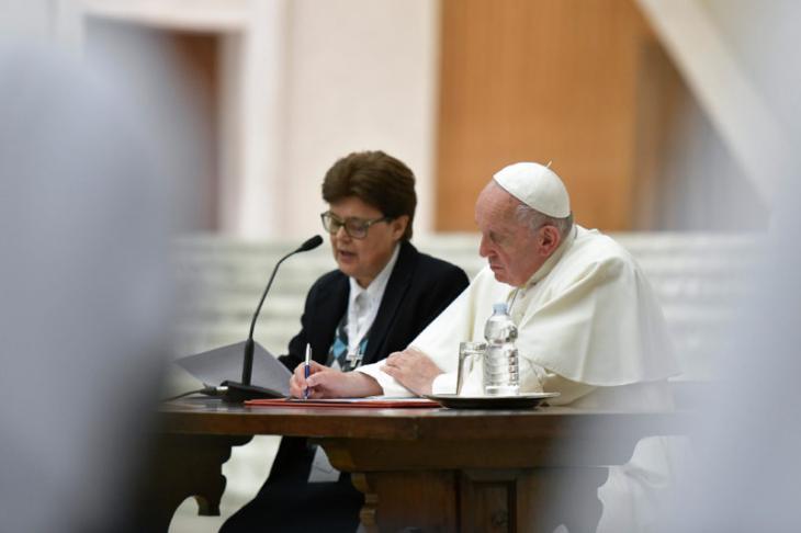 Frère François, je suis franciscaine comme vous ; je me trouve ici avec 850 Supérieures générales et nous représentons un grand nombre de sœurs engagées dans de nombreux ministères de l’Église.