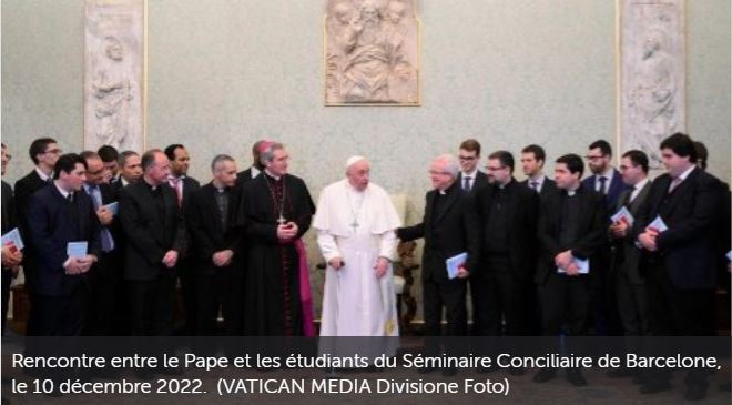 «Souvenez-vous que lorsque vous serez prêtres, votre première obligation sera une vie de prière née d'actions de grâces pour cet amour particulier que Dieu vous a témoigné en vous appelant à son service». Tel est le conseil donné par le Pape François aux étudiants du Séminaire Conciliaire de Barcelone. Exhortant ces séminaristes à la prière, il les a invités à se confronter aux attitudes de la Sainte Vierge, en s’interrogeant ainsi: «Comment était-elle lorsque Dieu l'a appelée? Et moi, comment étais-je? Avec quel zèle est-ce que je planifie ma future vie sacerdotale? Est-ce que je me lèverai - dit saint Manuel - comme une bulle dans une horloge d'amour en ébullition, pour apporter Dieu au monde? L'emmènerai-je jusqu'à la montagne, jusqu'au plus dur et au plus douloureux?».