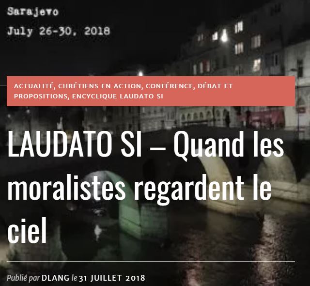 Ce 26 août s’est ouverte la troisième conférence international du «Catholic Theological Ethics in the World Church» à Sarajevo (en Bosnie Herzégovine). A cette occasion, le pape François leur a adressé un message, revenant notamment sur leur soucis de protéger la planète.«Ce n’est pas un défi parmi d’autres, mais l’horizon de compréhension de l’éthique écologique et dans même temps de l’éthique sociale ». (…) «Nous avons besoin de personnes et d’institutions qui assument un leadership renouvelé. Nous n’avons pas besoin de déclarations bruyantes qui souvent restent vaines, ni d’antagonismes entre ceux qui veulent se montrer les plus forts, nous avons besoin d’un leadership qui aide à découvrir et à vivre d’une manière plus juste d’être dans le monde comme membre d’un destin commun».