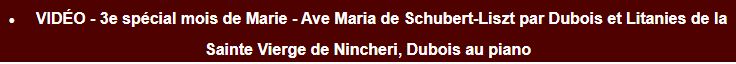L’Ave Maria de Schubert est considéré par bien des gens comme le plus beau des Ave Maria. La combinaison de ce chant magnifique, tel que transcrit au piano par Franz Liszt, et joué avec ferveur par Anne-Marie Dubois, est encore plus édifiant, parce que combiné avec les 19 premières invocations choisies par le vitrailliste Guido Nincheri des Litanies de la sainte Vierge, représentées avec les superbes vitraux du même Guido Nincheri à la Cathédrale de l’Assomption de Trois-Rivières. Terminés en 1954, ceux-ci représentent chacun une qualité religieuse de la sainte Vierge, dans une invocation à elle. Si on veut prier avec les invocations, il faut dire, après chacune de celles-ci, « priez pour nous ».